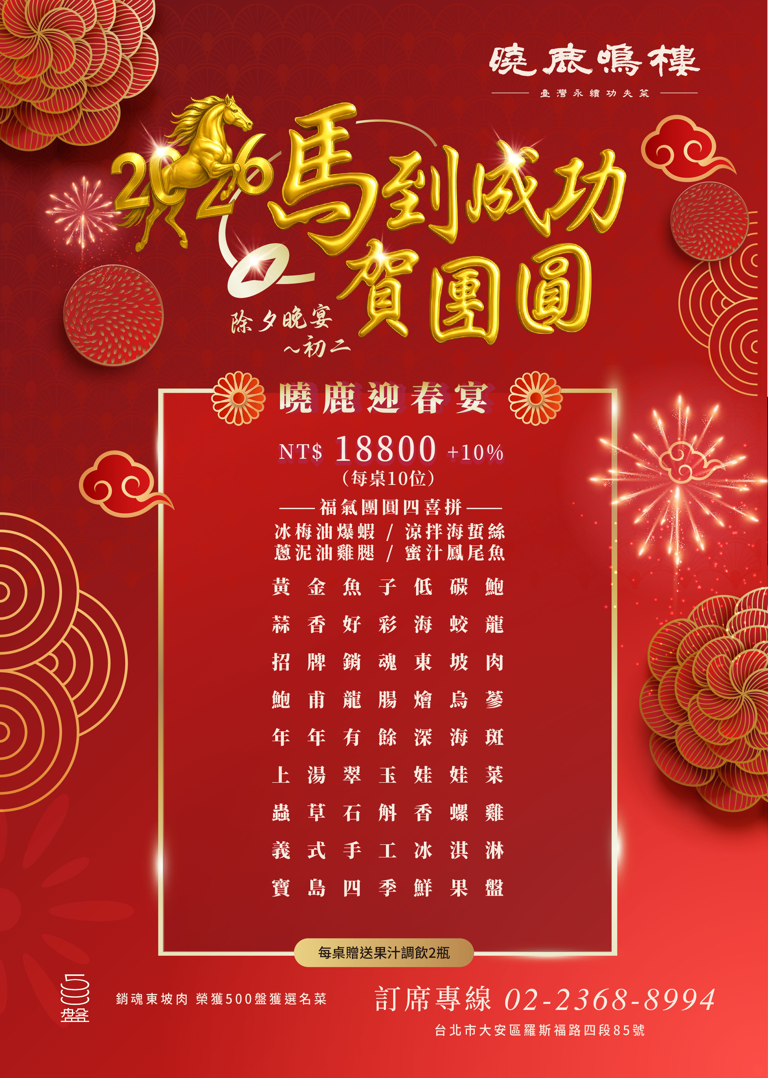 曉鹿鳴樓特別推出【2026 馬年團圓年菜系列】,