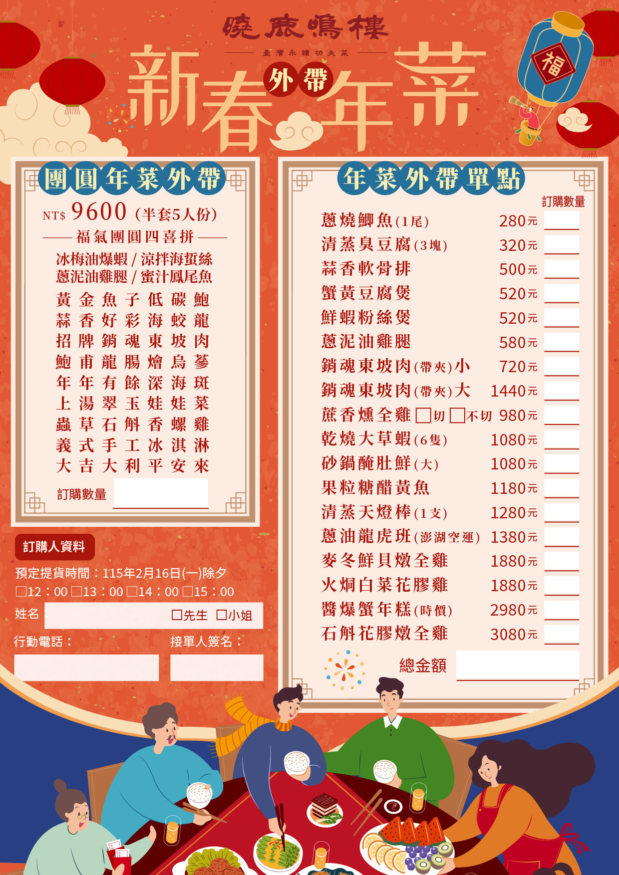 📅 預訂截止:2026/2/8📍取餐地點:曉鹿鳴樓台北店